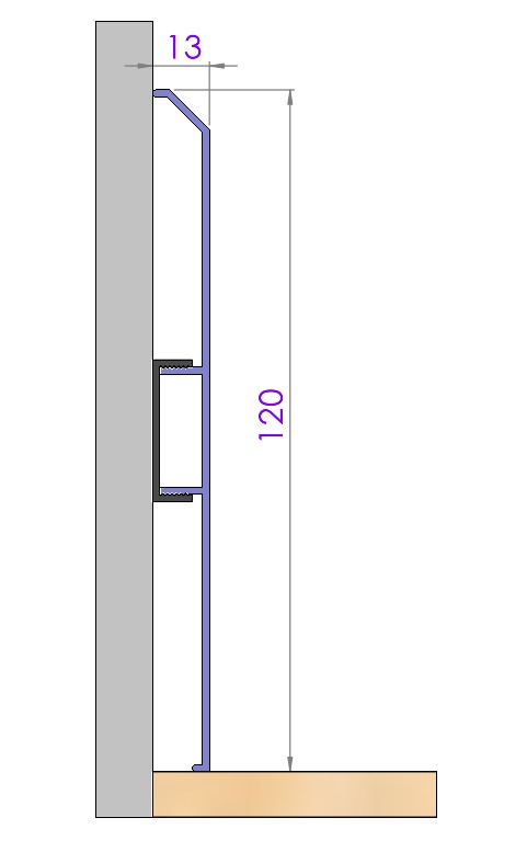 - ALT02 üstü pahlı alüminyum süpürgelik modeli, modern ve keskin hatlı tasarımı ile mekanlara estetik ve profesyonel bir görünüm kazandırır.